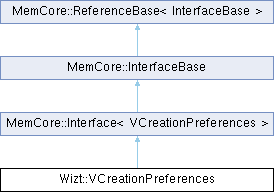 Public Types inherited from MemCore::Interface< VCreationPreferences > | |