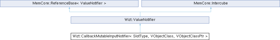 Inheritance diagram for Wizt::CallbackMutableInputNotifier< SlotType, VObjectClass, VObjectClassPtr >: