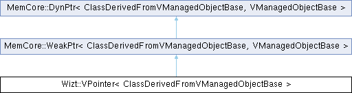 Protected Member Functions inherited from MemCore::WeakPtr< ClassDerivedFromVManagedObjectBase, VManagedObjectBase > | |
