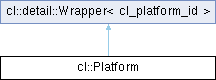 Public Types inherited from cl::detail::Wrapper< cl_platform_id > | |