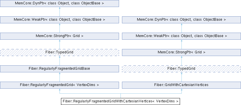 Public Types inherited from Fiber::RegularlyFragmentedGrid< VertexDims > | |