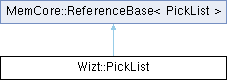 Public Types inherited from MemCore::ReferenceBase< PickList > | |