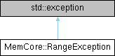 Inheritance diagram for MemCore::RangeException: